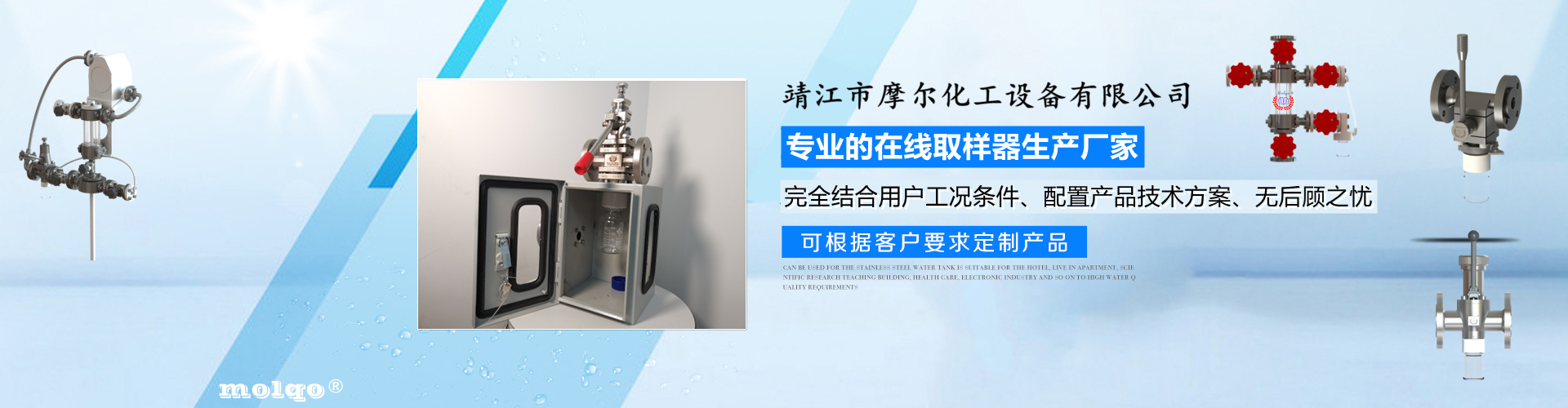 靖江市摩爾化工設備有限公司位于蘇中明珠——江蘇省靖江市城南工業園區東進路北側天元艾爾瑞內,另有生產基地位于靖江市經濟技術開發(fā)區新號路1號鼎電科技園內。我公司由數名長期從事化工生產、氟塑襯里模具開發(fā)以及機械自控設備的專業人員共同合作成立,致力于提供客戶最優(yōu)的高效在線取樣、反應及精餾分離設備,為客戶提供合理的設備選型方案,以幫助客戶提高綜合生產效率以及改善生產現場環(huán)境為目標。 本公司主要制造及銷售的產品有:釜用在線取樣裝置,管道取樣閥,釜用清洗噴淋裝置、搪玻璃設備、GMP專用搪玻璃設備、氟塑襯里設備、攪拌器、釜用機械密封、氣動閥門及搪玻璃管道、襯氟閥門管道、非標不銹鋼容器,精餾塔塔器、片式冷凝器及PTFE密封件、鋯、鈦、鉭、鎳等加工件制品。我司是一家集研發(fā)銷售、設計咨詢服務于一體的專業···